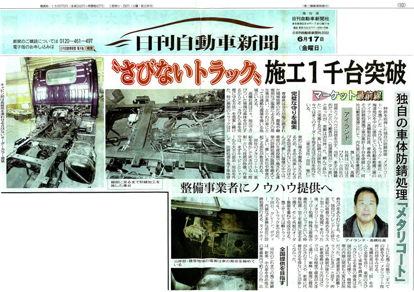 2022年6月17日、日刊自動車新聞社発行の日刊自動車新聞に掲載されました。