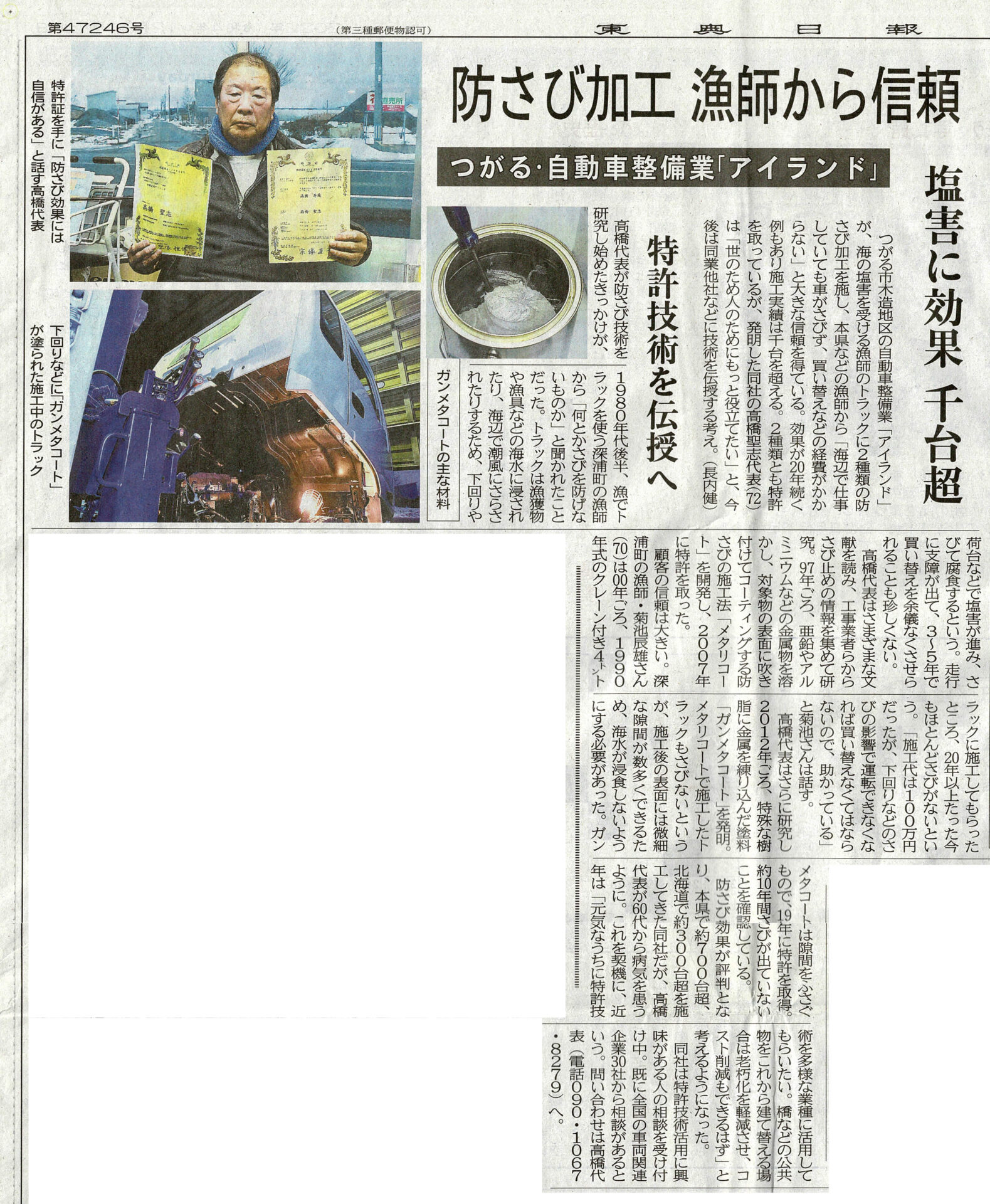 2022年12月31日、地元紙の東奥日報に掲載されました。