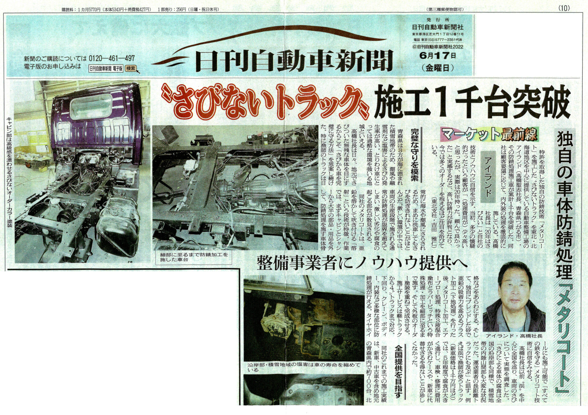 2022年6月17日、日刊自動車新聞社発行の日刊自動車新聞に掲載されました。